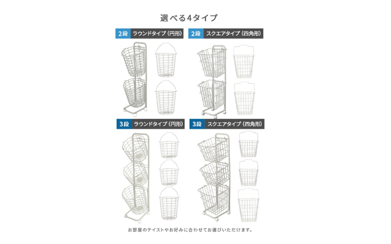 ランドリーバスケットの2段・3段・キャスター付きタイプは、洗濯物をまとめて入れるだけでなく、仕分けしながらすっきり収納できるアイテムです。