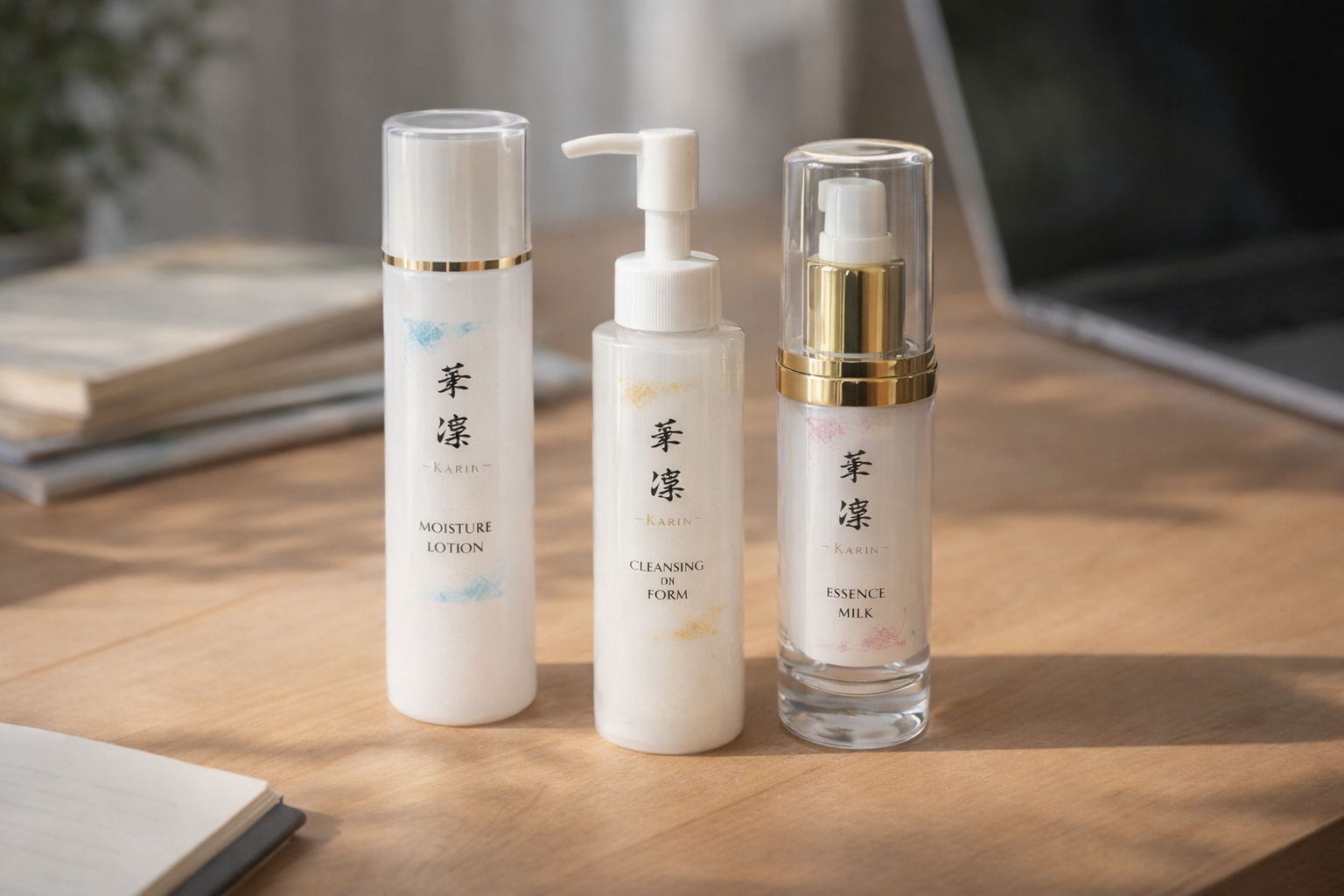 華凛は、化粧水・クレンジング&フォーム・エッセンスミルク(UV)を軸に、